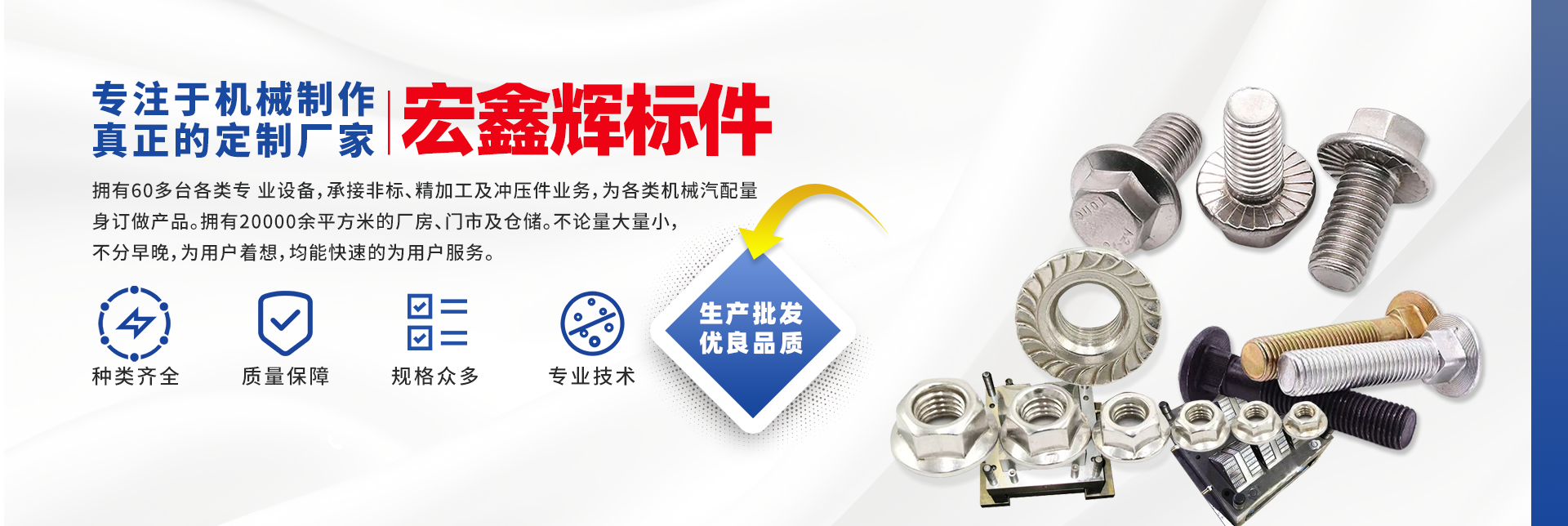 四川宏鑫輝標(biāo)準(zhǔn)件制造有限公司下設(shè):南充市宏輝機(jī)械制造有限公司,南充市聚宏機(jī)電設(shè)備有限公司,公司始建于1994年。為了拓展市場(chǎng),降低成本,本公司于2007年、2020年分別在南充、 成都、重慶創(chuàng)建了生產(chǎn)基地。擁有60多臺(tái)各類專 業(yè)設(shè)備,承接非標(biāo)、精加工及沖壓件業(yè)務(wù),為各 類機(jī)械汽配量身訂做產(chǎn)品。擁有20000余平方米的廠房、門市及倉(cāng)儲(chǔ)。公司以誠(chéng)信為本,竭誠(chéng)為廣大客戶提供服務(wù)。不論量大量小,不分早晚,為用戶著想,均能快速的為用戶服務(wù)。